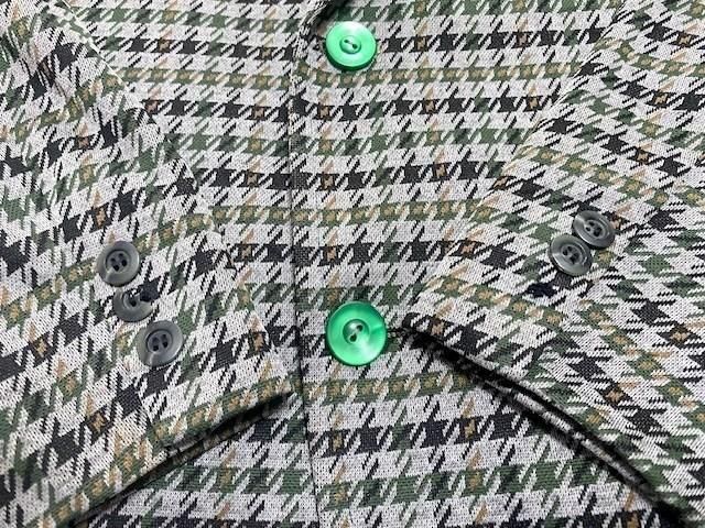全体にユーズド感あり、フロントボタン交換、袖ボタンの割れ欠損、等が見られますが、