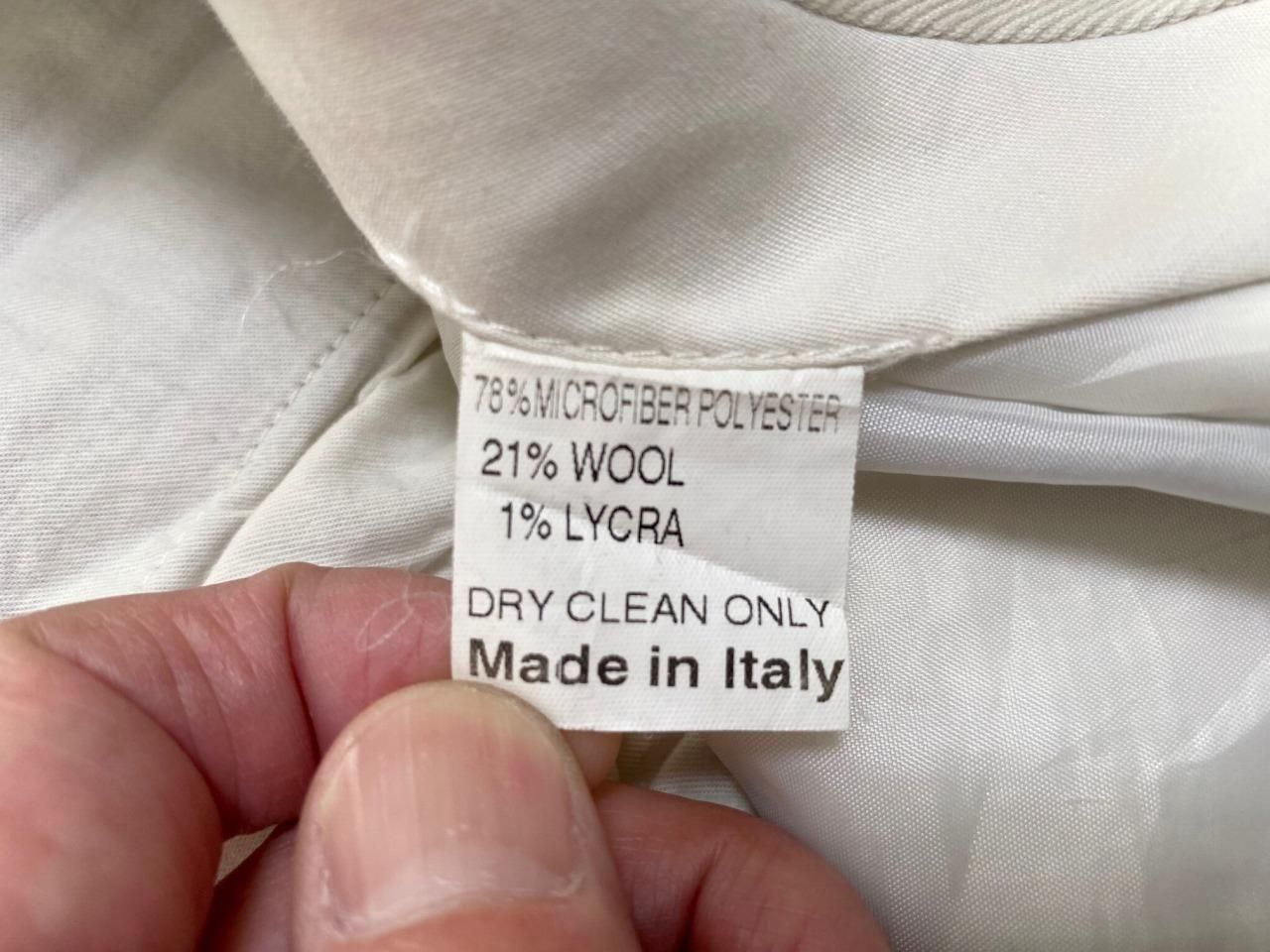 イタリア製で、素材はマイクロファイバーポリエステル78%ウール21%ライクラ1%です。