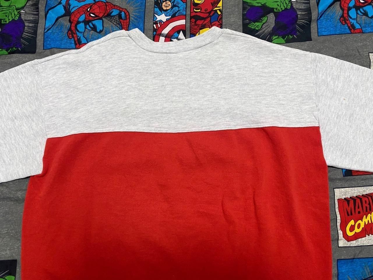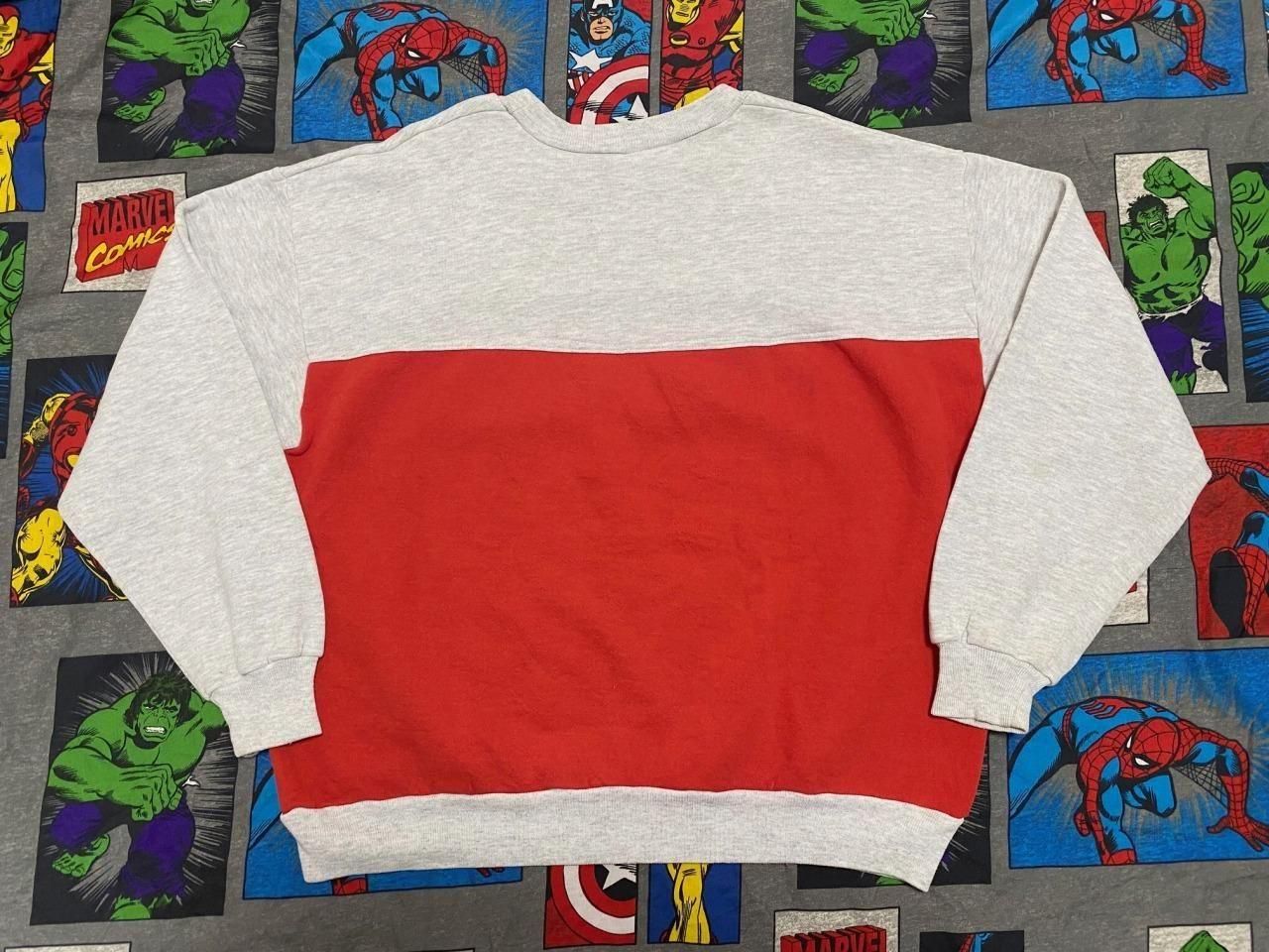 ツートーンカラーのプリントスウェットシャツです。