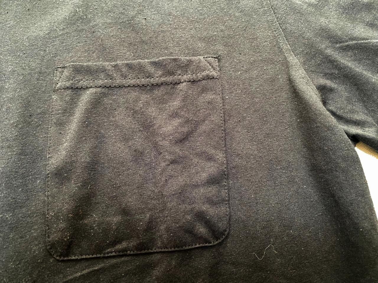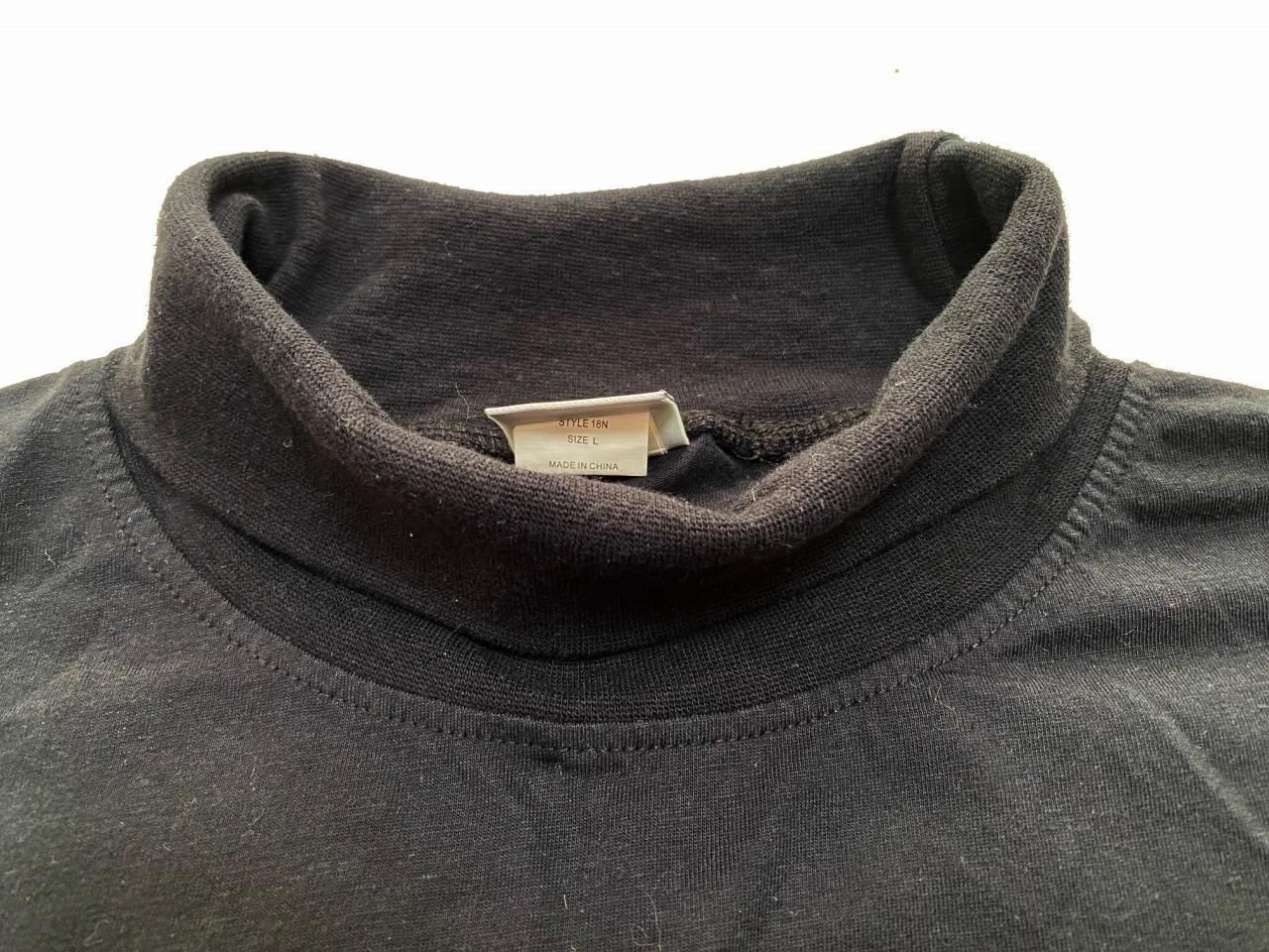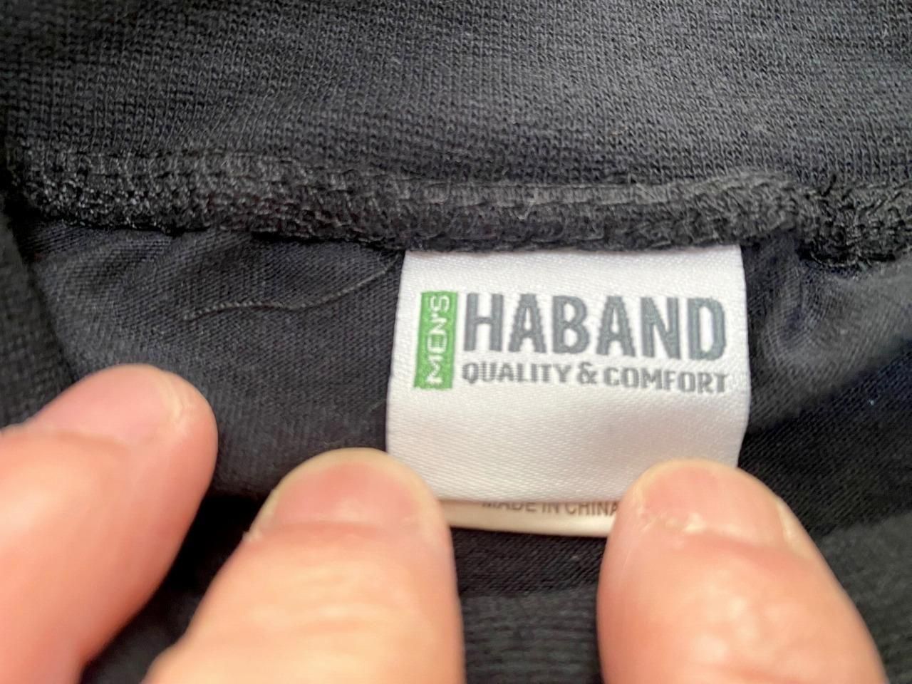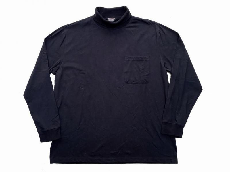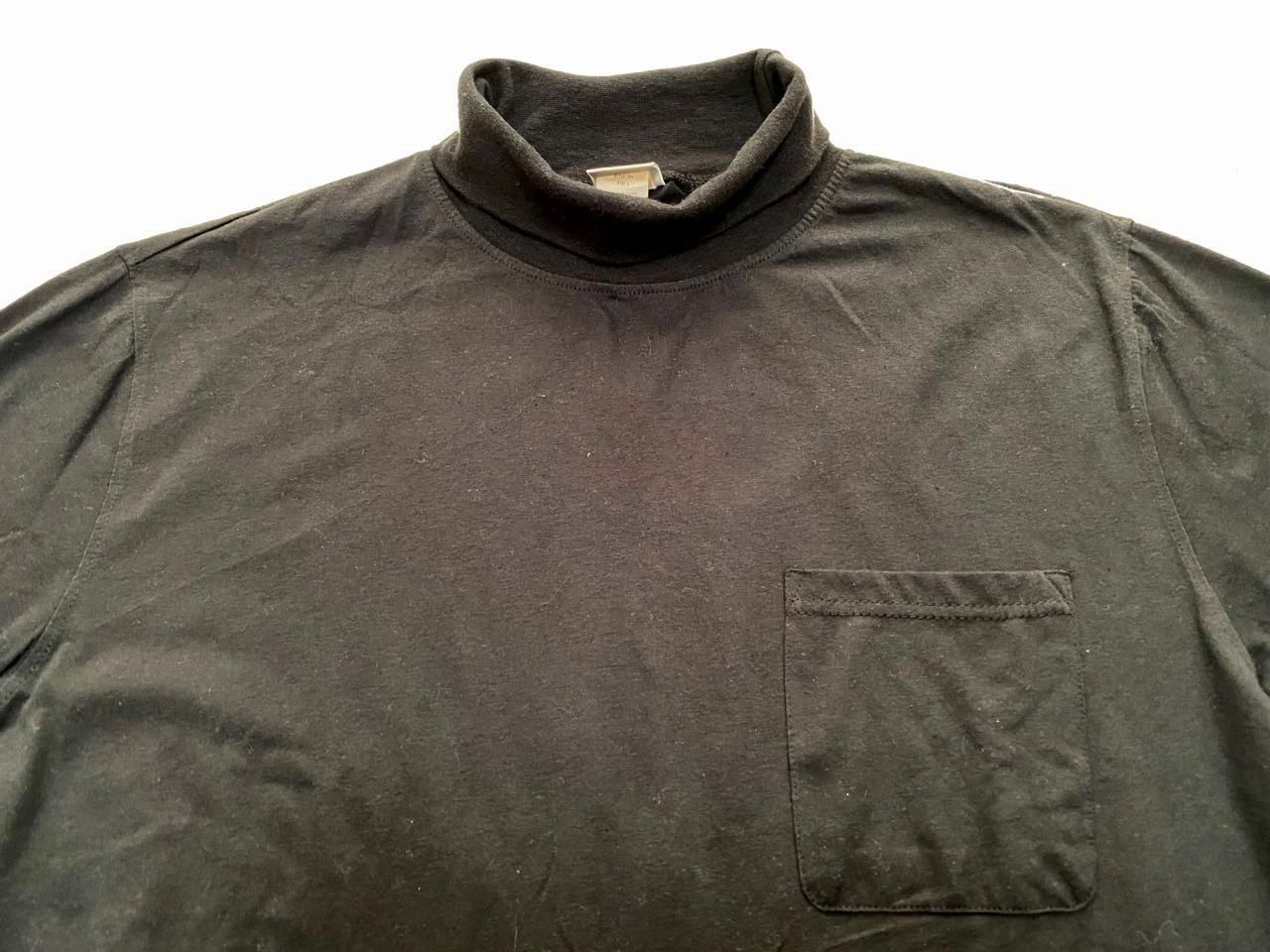 HABANDの黒の胸ポケット付きタートルネックトップスです。