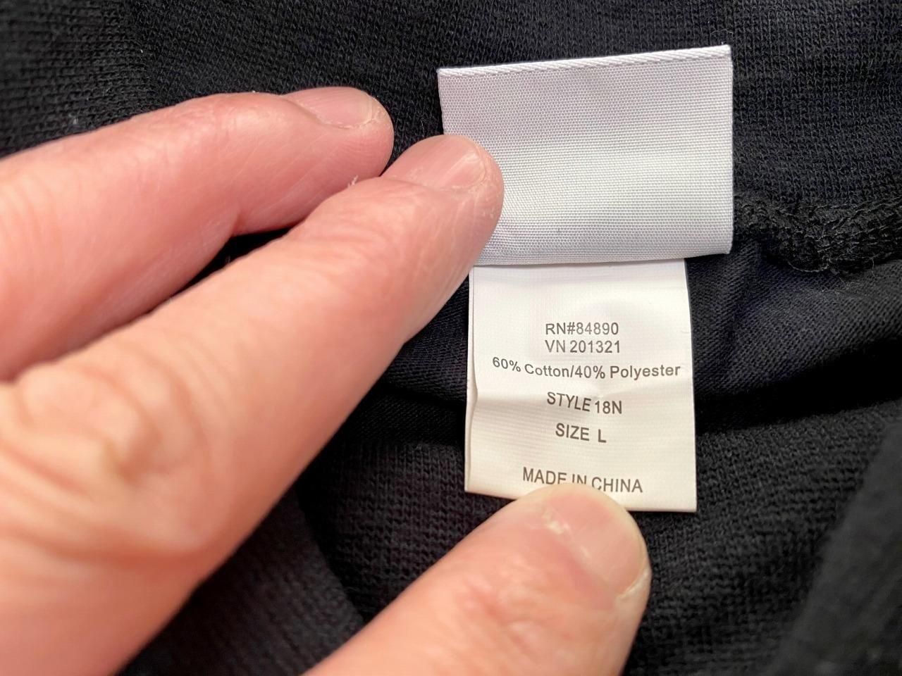 中国製で、素材はコットン60%ポリエステル40%、軽めの生地です。