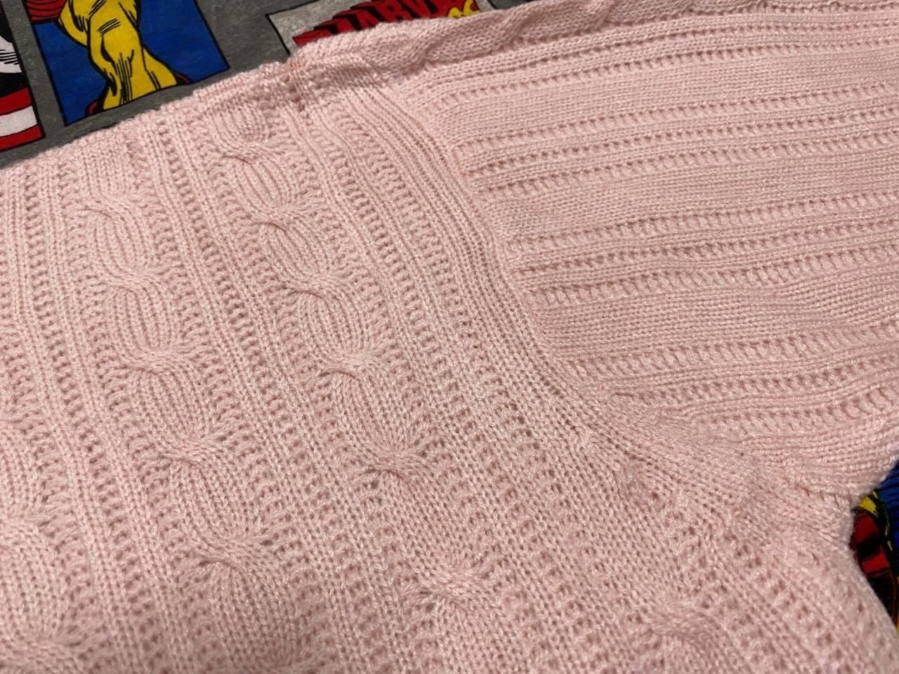 ERIKA CLASSICSのレディースのピンクのケーブルニットセーターです。