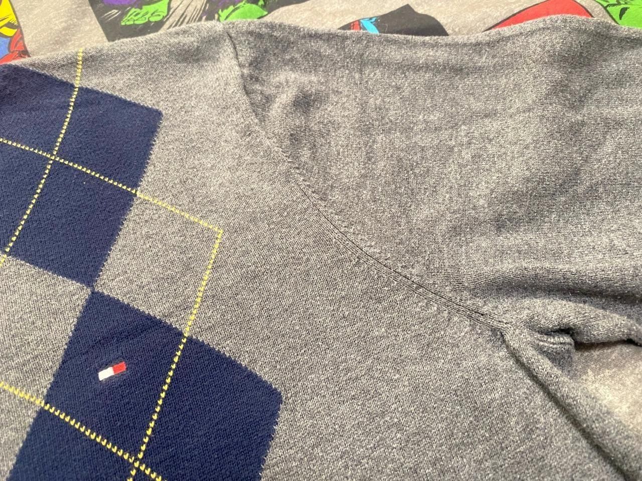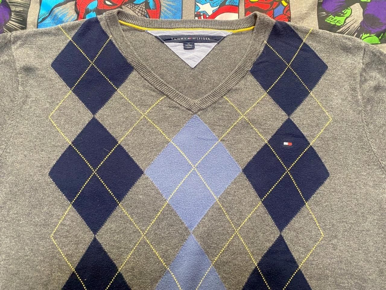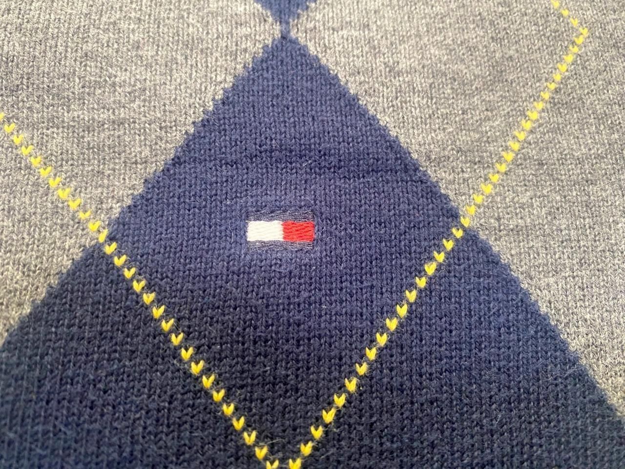 トミーヒルフィガーのアーガイル柄のVネックセーターです。