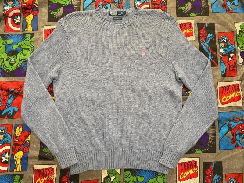 ラルフローレンのサックスブルーのワンポイントロゴ刺繍入りセーターです。