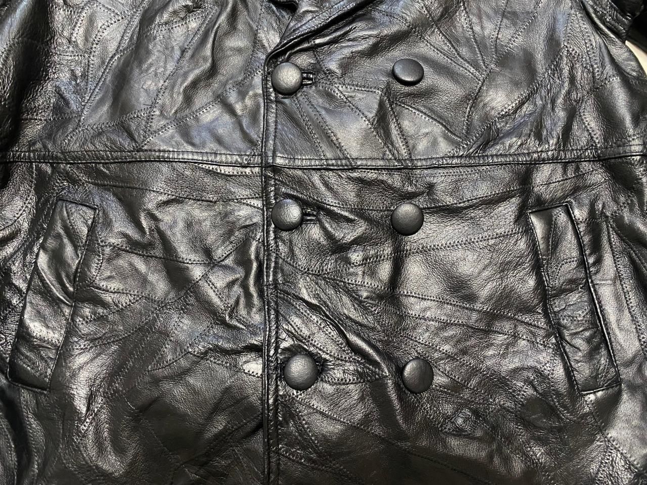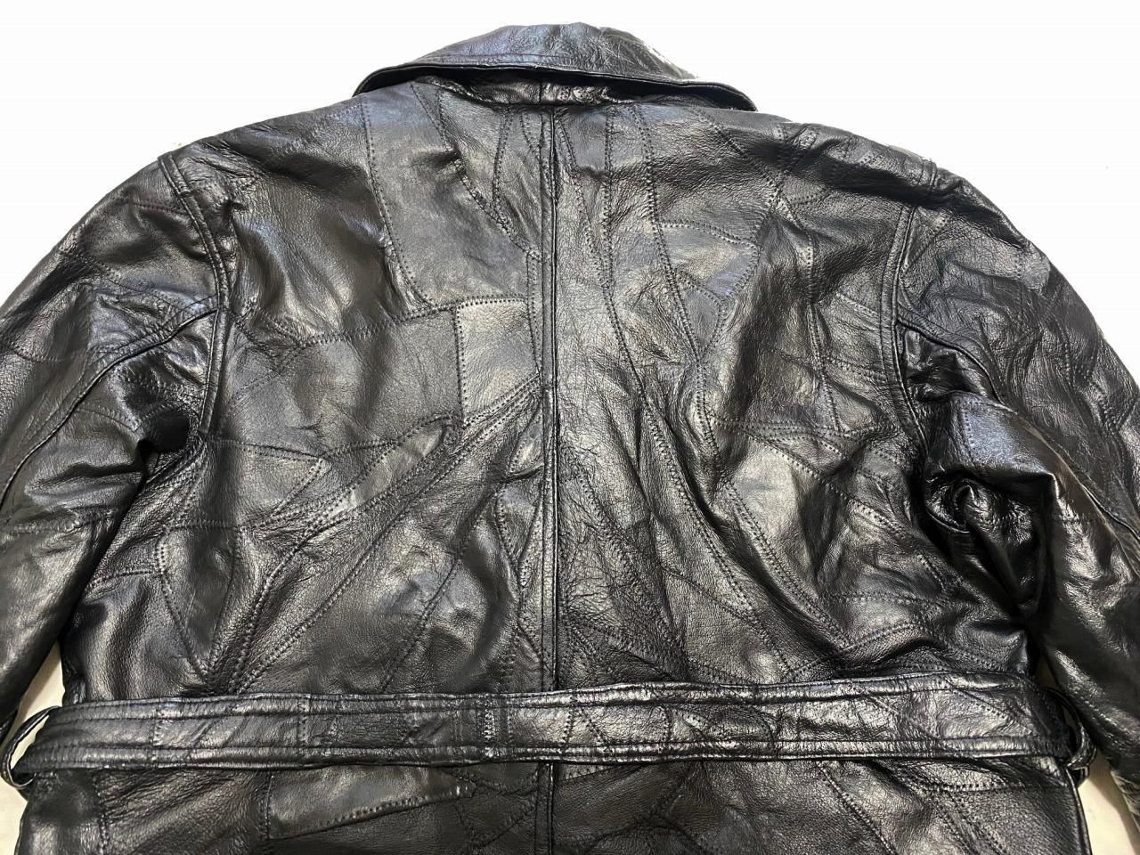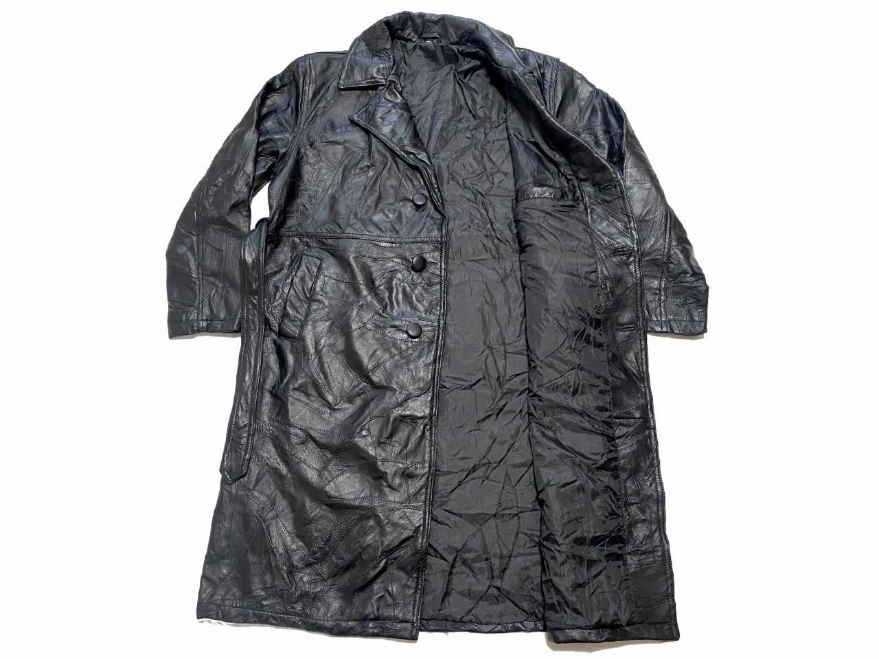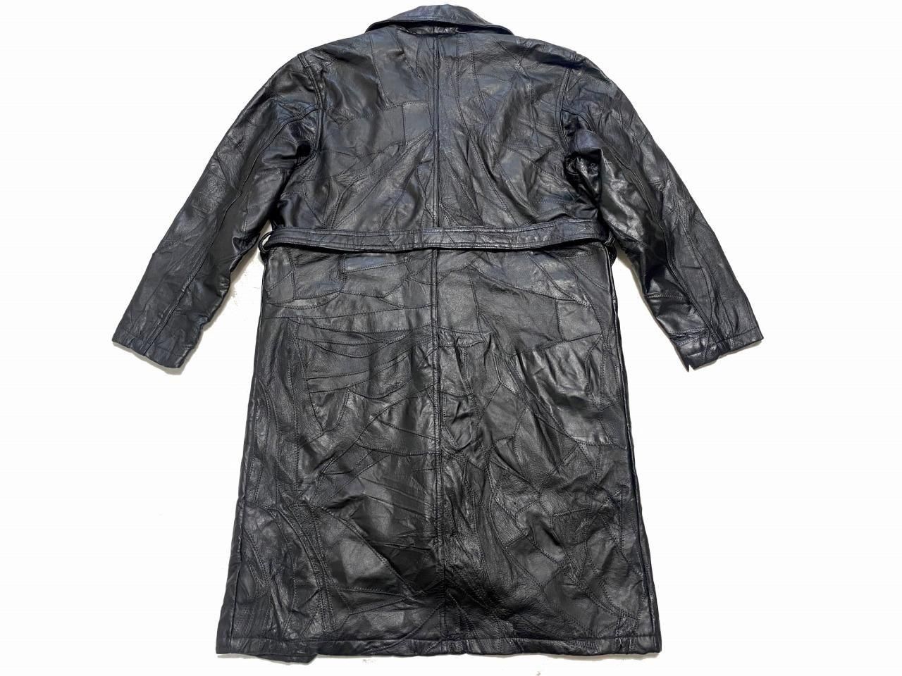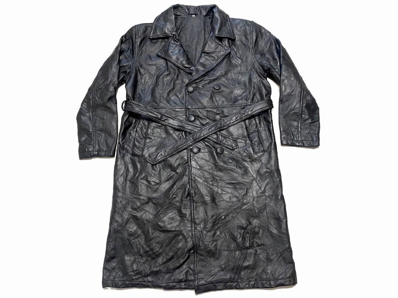 ブランド不明ですが、パッチワーク風のレザートレンチコートです。