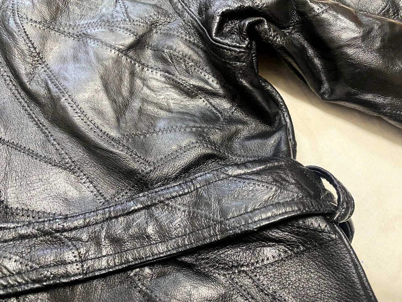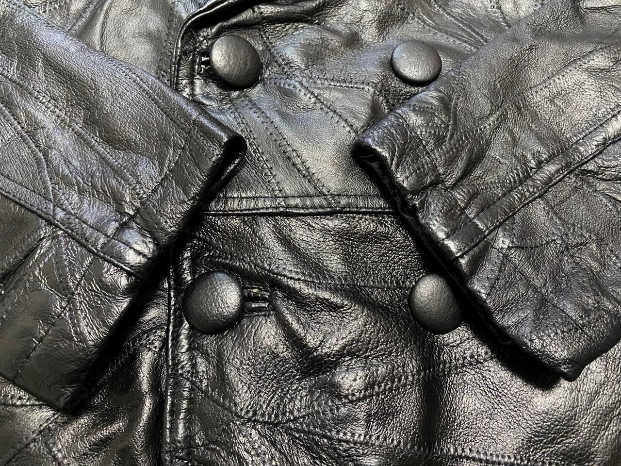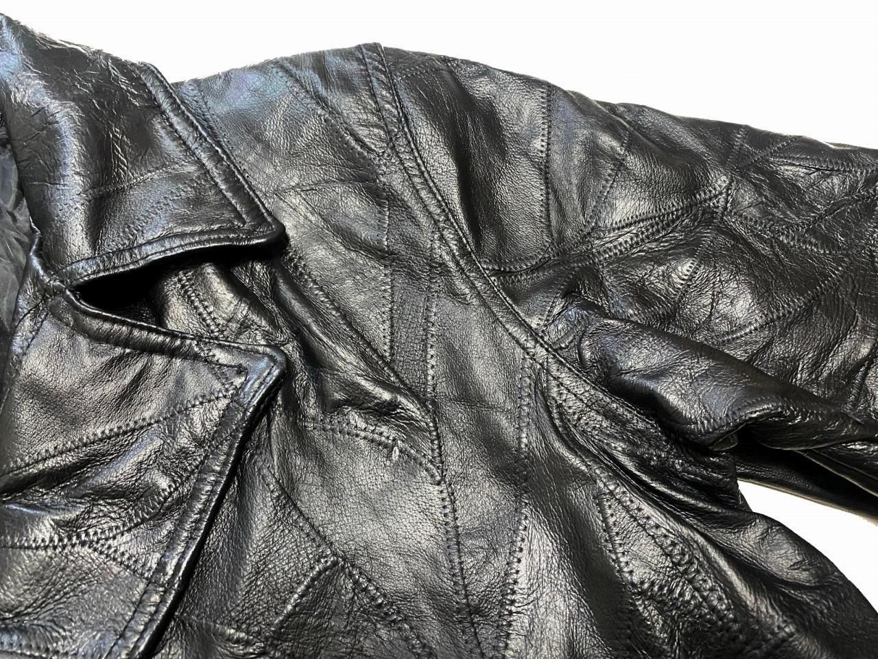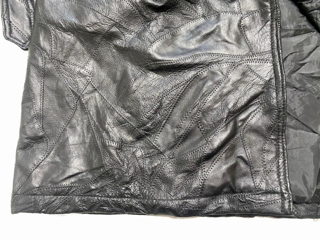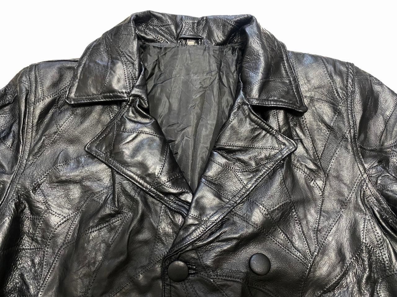 ブランド不明ですが、パッチワーク風のレザートレンチコートです。