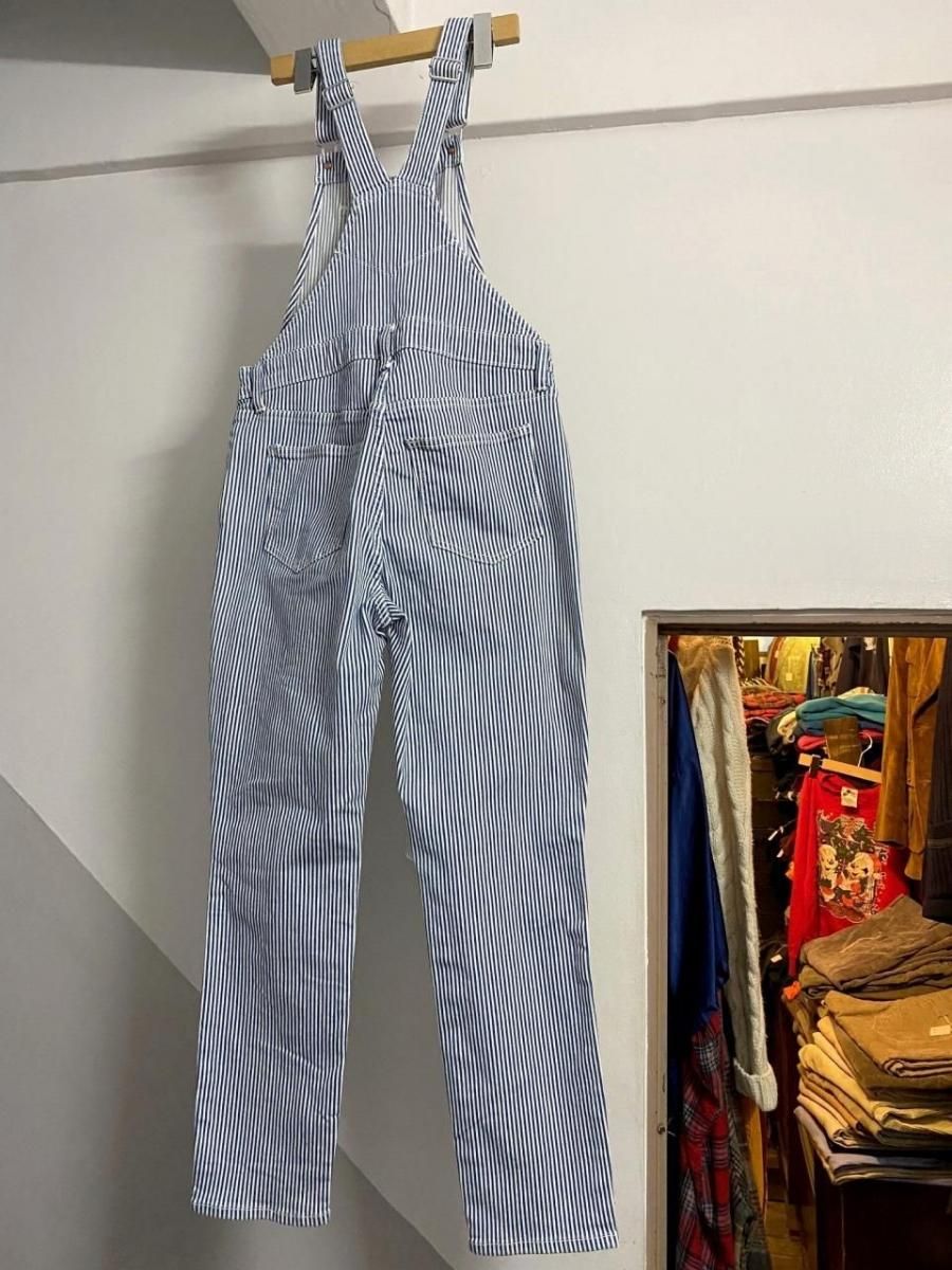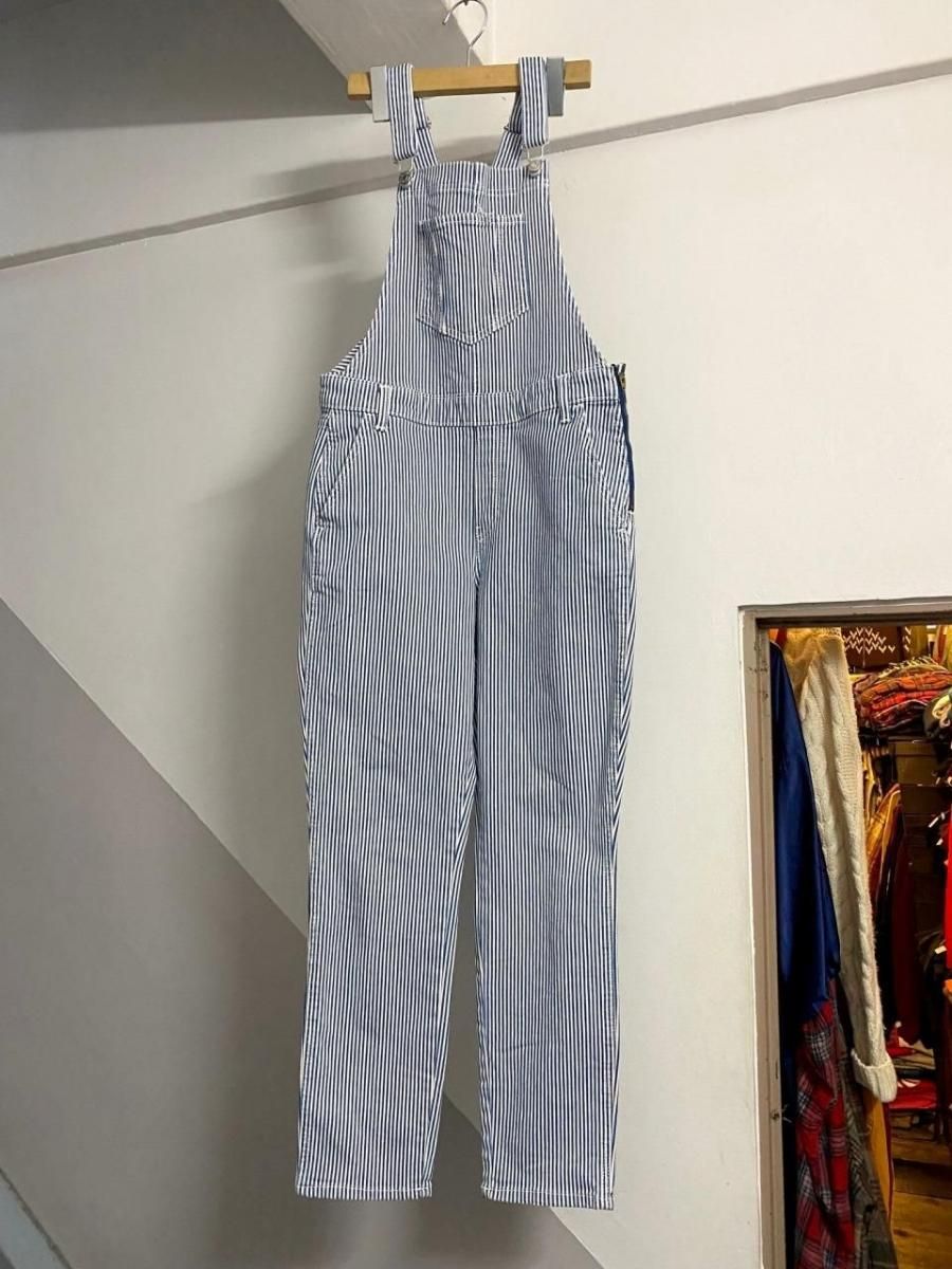 OLD NAVYのレディースのヒッコリーストライプのオーバーオールです。