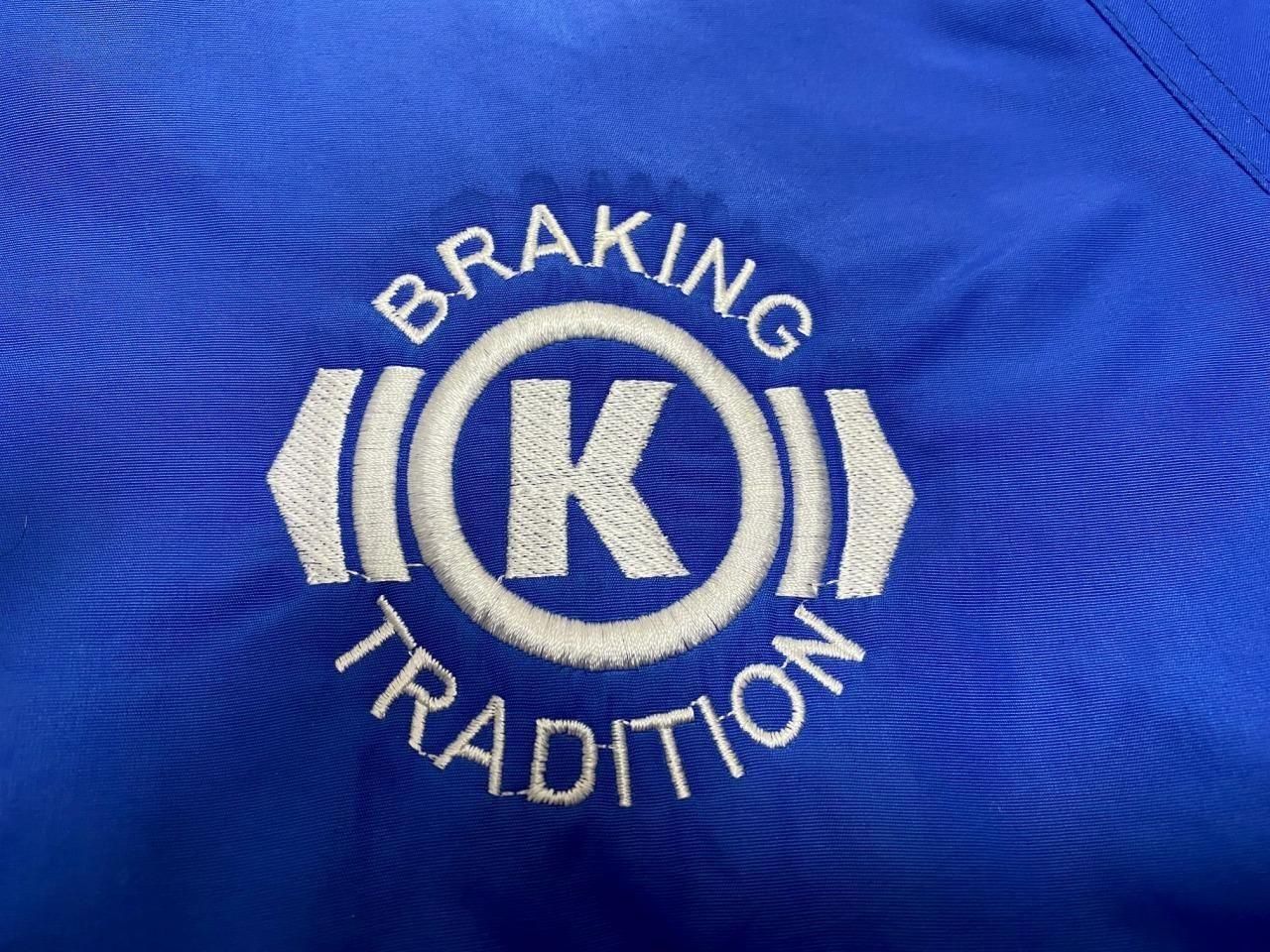 Hollowayの青のフリース裏地の企業ロゴ刺繍入りブルゾンです。