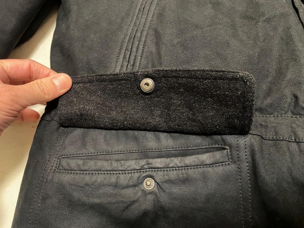 ローマン・ロスチャイルドの黒のフェイクスウェード地のハーフコートです。