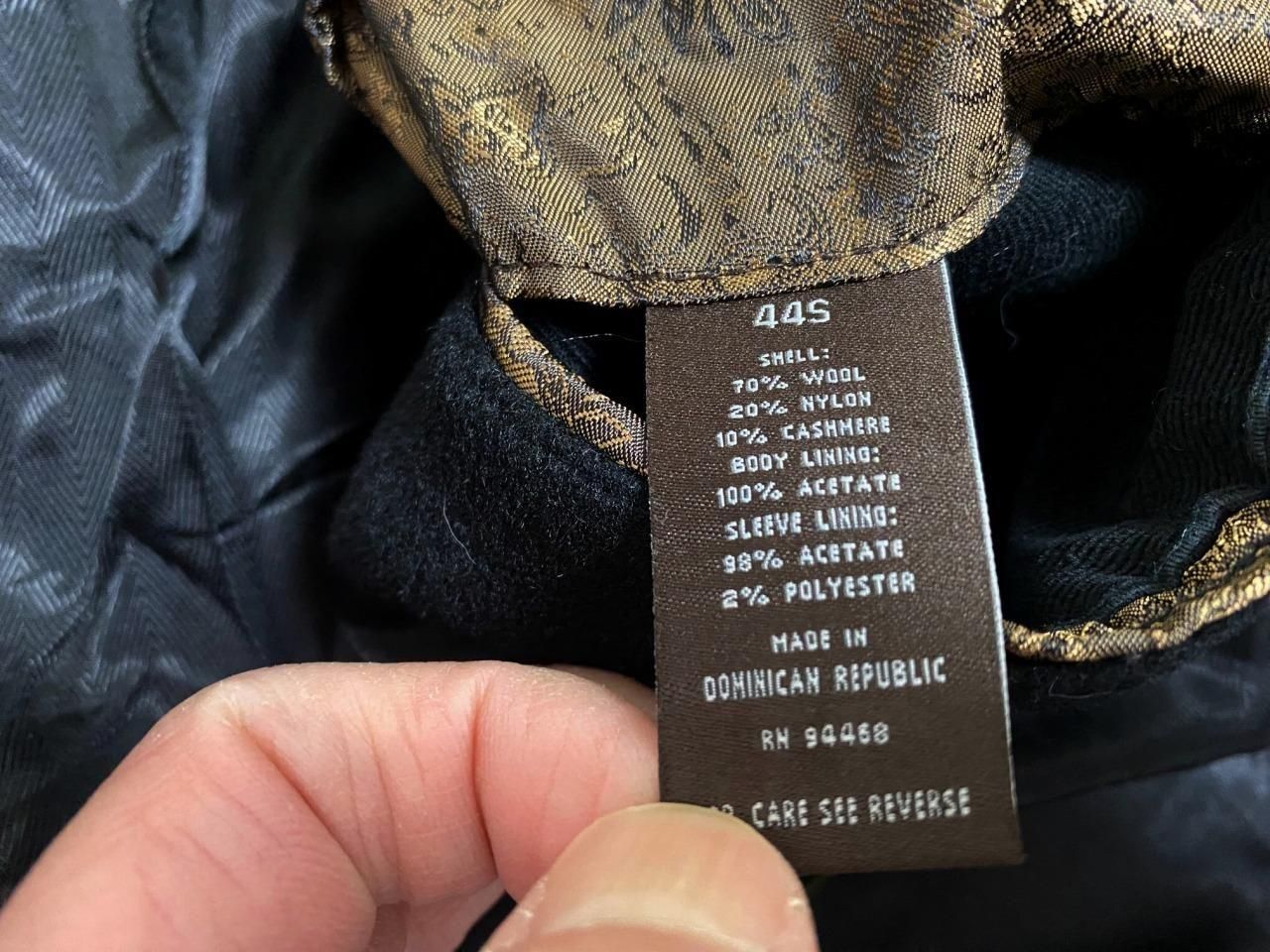 サイズ表記44Sで、肩幅51cm袖丈64cm胸幅63cm着丈108cmです。