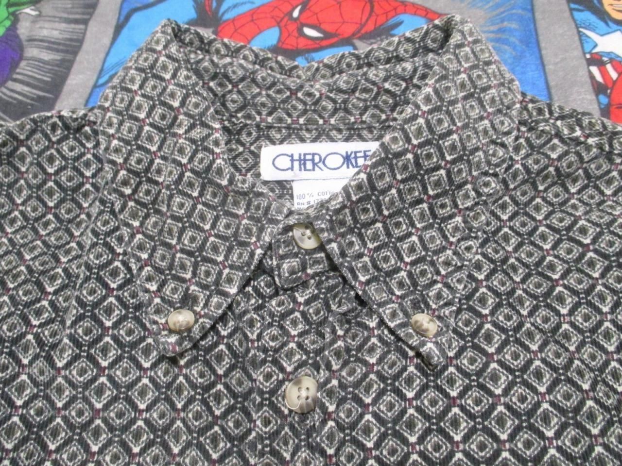 CHEROKEEの総柄のボタンダウンコーデュロイシャツです。