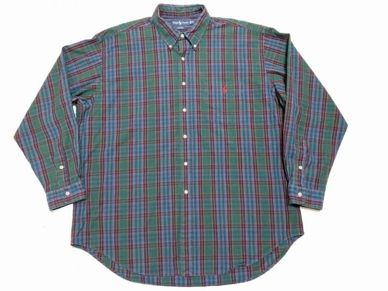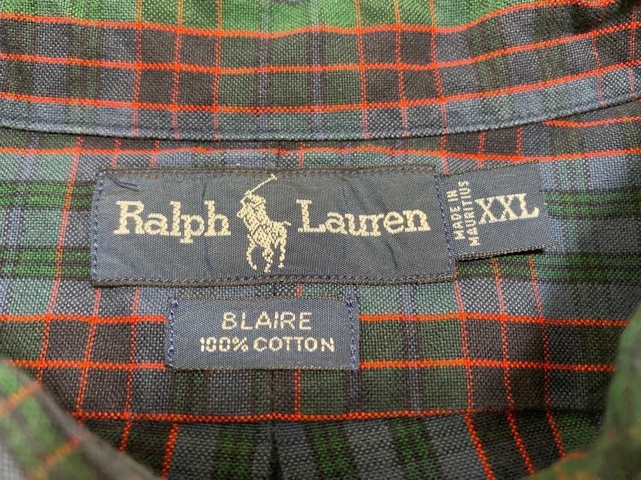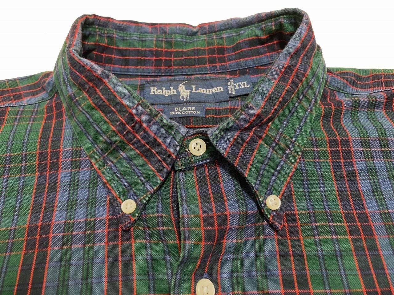 ラルフローレンBLAIREの緑のチェック柄ボタンダウンシャツです。