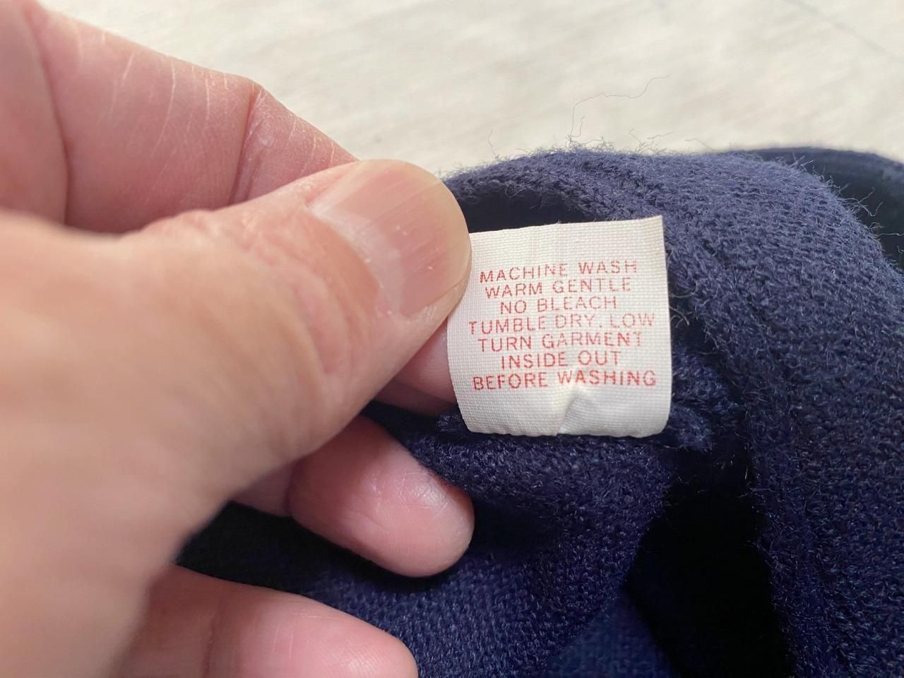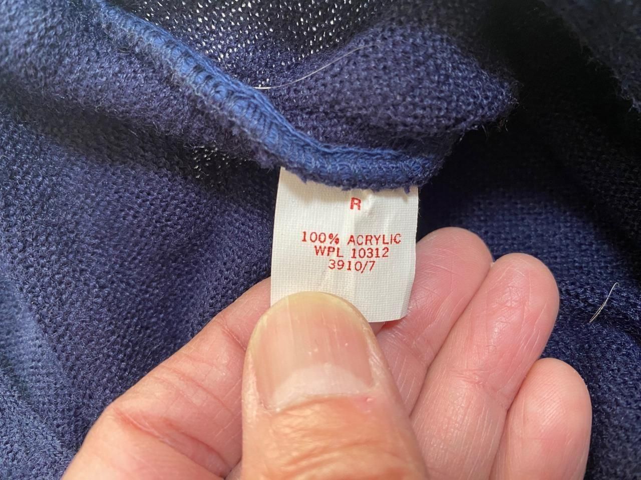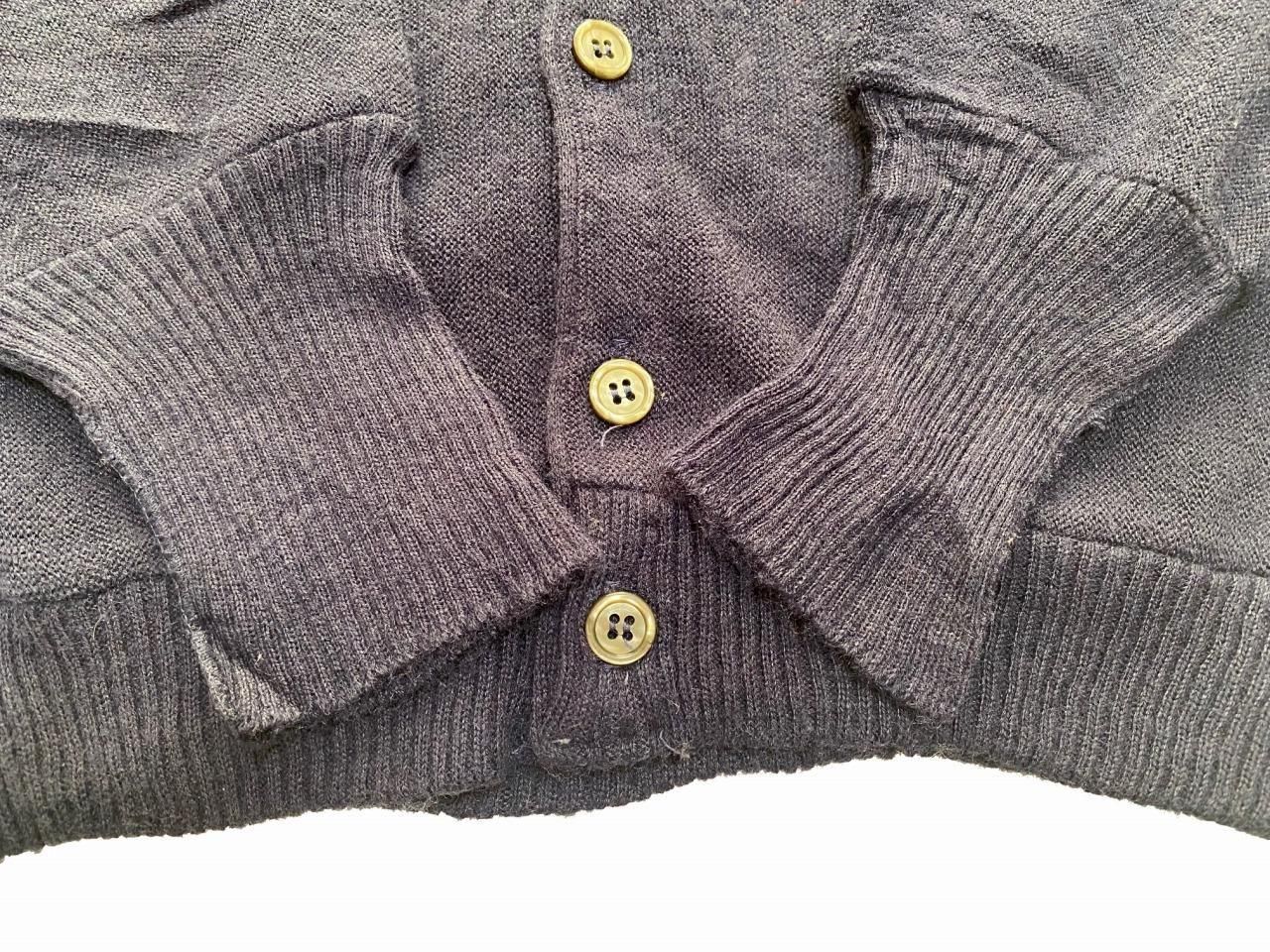 Saddlebredの紺色のワンポイントロゴ刺繍ニットカーディガンです。