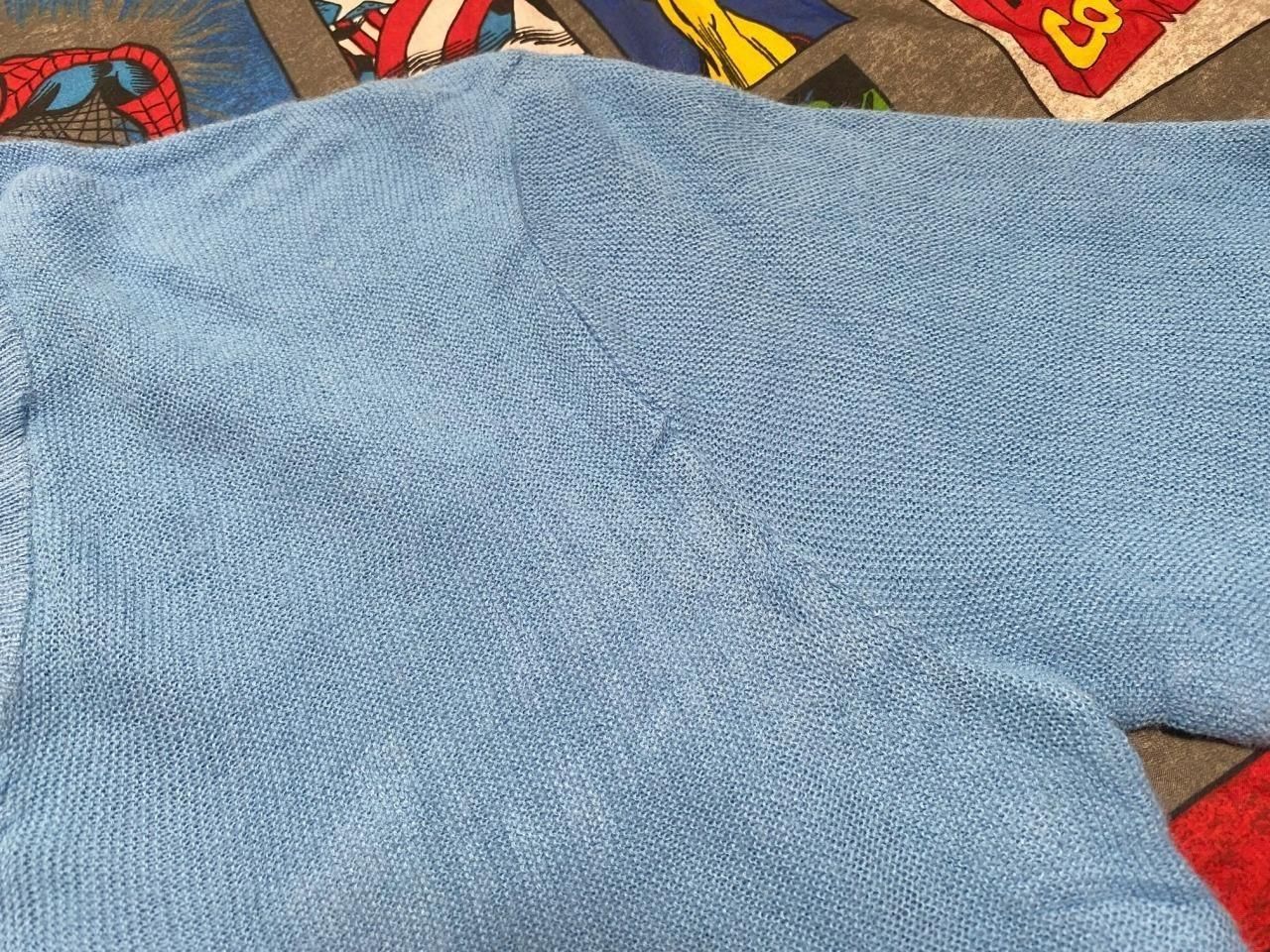 タグ無しで詳細不明ですが、サックスブルーのセーターです。